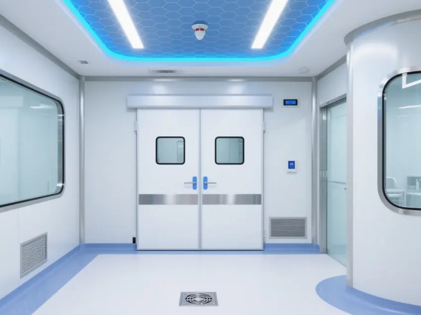 車間內(nèi)設(shè)有多個玻璃門和窗戶,既保證了空間的通透感,又便于觀察內(nèi)部情況。天花板上安裝了多盞方形的照明燈,提供充足的光線,同時還有通風(fēng)設(shè)備,確??諝饬魍ā?/div>