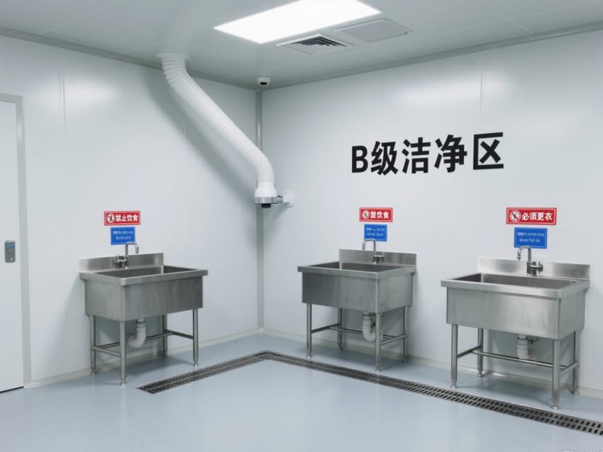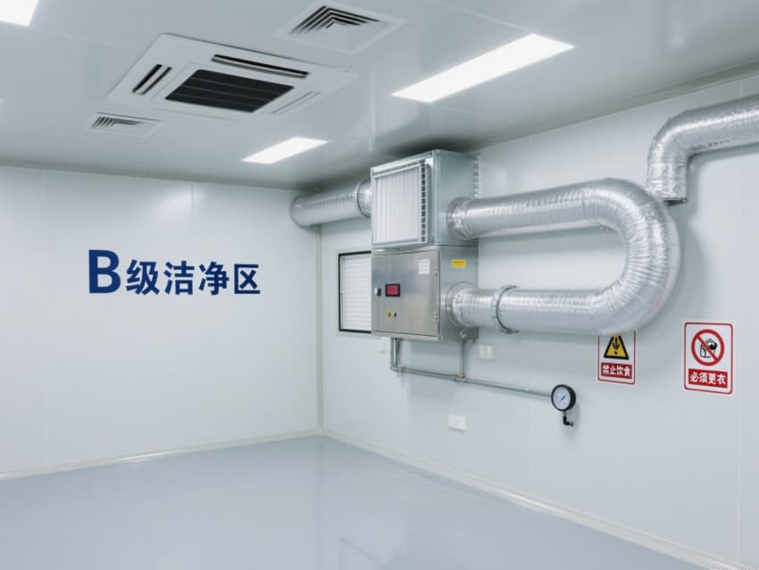 頂部嵌入式高效送風口形成垂直層流,配合側(cè)下回風系統(tǒng)實現(xiàn)每小時15-25次空氣置換,恒溫恒濕系統(tǒng)精準控制溫度(18-26℃)、濕度(45-65%)。不銹鋼潔凈門窗與傳遞窗采用高氣密性密封結(jié)構(gòu),嵌入式LED潔凈燈提供≥300lux均勻照明,全方位營造安全、精準的生物制藥生產(chǎn)基礎(chǔ)環(huán)境。