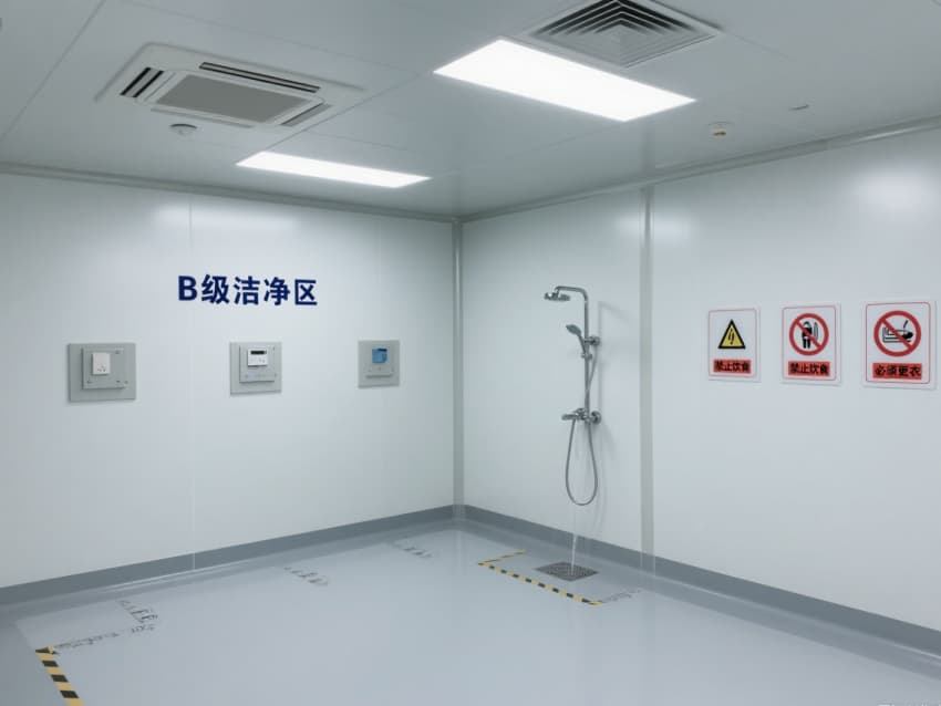 車間嚴格遵循萬級潔凈標準,每立方米空氣中≥0.5μm微粒數(shù)≤35.2萬個、菌落數(shù)≤10個。白色抗菌彩鋼板搭建的墻體與吊頂,具備抗菌、耐腐蝕、易消毒特性,墻面與地面的圓弧過渡設(shè)計徹底消除衛(wèi)生死角;淺灰防靜電環(huán)氧地坪則通過防靜電處理,避免靜電干擾生物活性物質(zhì)。?