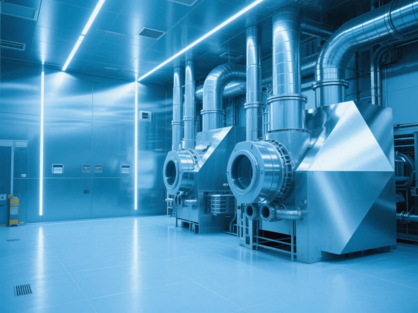 視覺語言上,深空灰設備基色搭配紫色工藝氣體管路,紅色應急系統形成強烈功能警示。通過隱藏式LED燈帶(1,000lux無影照明)與全金屬啞光材質,實現納米級生產與賽博美學的統一。