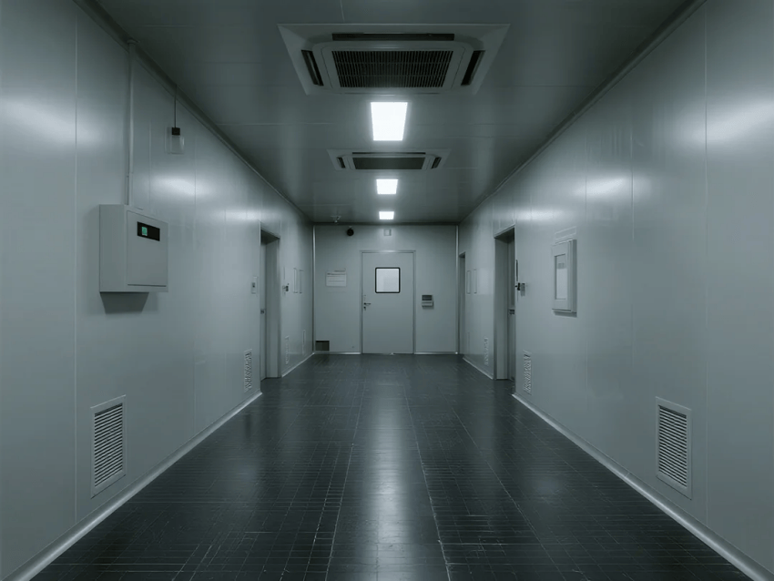 空氣凈化:天花滿布FFU+ULPA超高效過濾器,換氣次數≥60次/h,維持0.45m/s垂直層流;