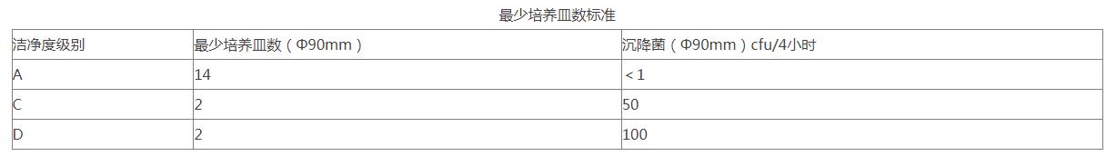 11、采樣點(diǎn)一般在離地面0.8m高度水平面上均勻布置,特殊情況下,可以就近選擇,但原則上要避開回風(fēng)口。采樣點(diǎn)多于5點(diǎn)時(shí),也可以在離地平0.8m~1.5m高度的區(qū)域內(nèi)分層布置,但每層不少于5點(diǎn)。  采樣次數(shù)的限定對(duì)于任何小潔凈室或局部空氣凈化區(qū)域,采樣點(diǎn)的數(shù)目不得少于2個(gè),總采樣次數(shù)不得少于5次。每個(gè)采樣點(diǎn)的采樣次數(shù)可以多于1次,且不同采樣點(diǎn)的采樣次數(shù)可以不同。  12、潔凈度靜態(tài)測(cè)試:在生產(chǎn)操作全部結(jié)束以后,全部操作人員撤出生產(chǎn)現(xiàn)場(chǎng),經(jīng)20分鐘的自凈后,進(jìn)行空氣懸浮粒子的靜態(tài)檢測(cè),并確定警戒限和糾偏限(分別暫定為法定標(biāo)準(zhǔn)的50%及80%)。制劑車間的潔凈級(jí)別為D級(jí),在靜態(tài)情況下,靜態(tài)的標(biāo)準(zhǔn)為:  各潔凈室沉降菌測(cè)試目的是確認(rèn)空調(diào)凈化系統(tǒng)的環(huán)境能夠達(dá)到要求,并確定沉降菌的警戒限度和糾偏限度(分別暫定為法定標(biāo)準(zhǔn)的50%及80%)。主要測(cè)試方法為《醫(yī)藥工業(yè)潔凈室(區(qū))沉降菌的測(cè)試方法》(GB/T16294-2010);取樣部位各潔凈室房間。取樣器具為培養(yǎng)皿(Φ90mm×15mm);取樣步驟及方法在HVAC系統(tǒng)至少運(yùn)行30分鐘,房間的溫濕度及相對(duì)壓差達(dá)到要求后,方可進(jìn)行沉降菌測(cè)試。用培養(yǎng)皿(Φ90mm×15mm)和瓊脂培養(yǎng)基進(jìn)行培養(yǎng),在采樣點(diǎn)放置,打開平皿蓋,使培養(yǎng)基暴露時(shí)間可以少于4小時(shí),將平皿蓋蓋上,然后在30~35℃條件下培養(yǎng)48小時(shí)后計(jì)數(shù)。(采樣點(diǎn)數(shù)目同懸浮粒子)  13、各潔凈室浮游菌測(cè)試目的是確認(rèn)空調(diào)凈化系統(tǒng)的環(huán)境能夠達(dá)到要求,并確定浮游菌的警戒限和糾偏限(分別暫定為法定標(biāo)準(zhǔn)的50%及80%)。測(cè)試依據(jù)《醫(yī)藥工業(yè)潔凈室(區(qū))浮游菌測(cè)試方法》(GB/T16293-2010);取樣部位各潔凈室房間。取樣器具為Φ90mm玻璃平皿。取樣步驟在HVAC系統(tǒng)至少運(yùn)行30分鐘,房間的溫濕度及相對(duì)壓差達(dá)到要求后,方可進(jìn)行浮游菌菌測(cè)試。用Φ90mm玻璃平皿和大豆酪蛋白瓊脂培養(yǎng)基(TSA)進(jìn)行培養(yǎng),在采樣點(diǎn)放置,打開平皿蓋,使培養(yǎng)基表面顯露30分鐘后,將平皿蓋蓋上,然后在30~35℃條件下培養(yǎng)48小時(shí)后計(jì)數(shù)。采樣點(diǎn)的位置及采樣點(diǎn)的數(shù)量可以同懸浮粒子測(cè)試要求。(采樣點(diǎn)數(shù)目同懸浮粒子)每個(gè)采樣點(diǎn)取樣一次。(每個(gè)采樣點(diǎn)一般只采樣一次)
