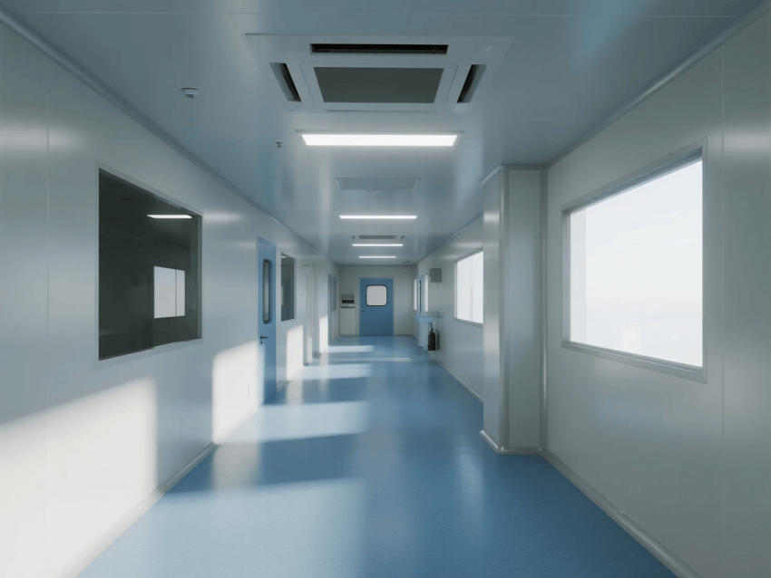 圍護系統(tǒng):50mm厚醫(yī)療級純白彩鋼板,表面采用納米銀離子抗菌涂層(抗菌率≥99.9%),所有接縫處采用R30mm圓弧一體化處理;