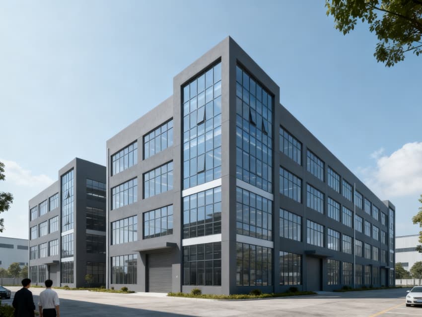 廠房外立面采用極簡工業風設計,以淺灰防腐金屬板為主體材質,搭配橫向通長Low-E中空玻璃幕墻,線條規整利落,既凸顯生物制藥行業的嚴謹屬性,又通過大面積采光設計引入自然光線,降低能耗;墻面無冗余裝飾,僅在主入口處設置簡約項目標識,強化空間的純粹感與辨識度。