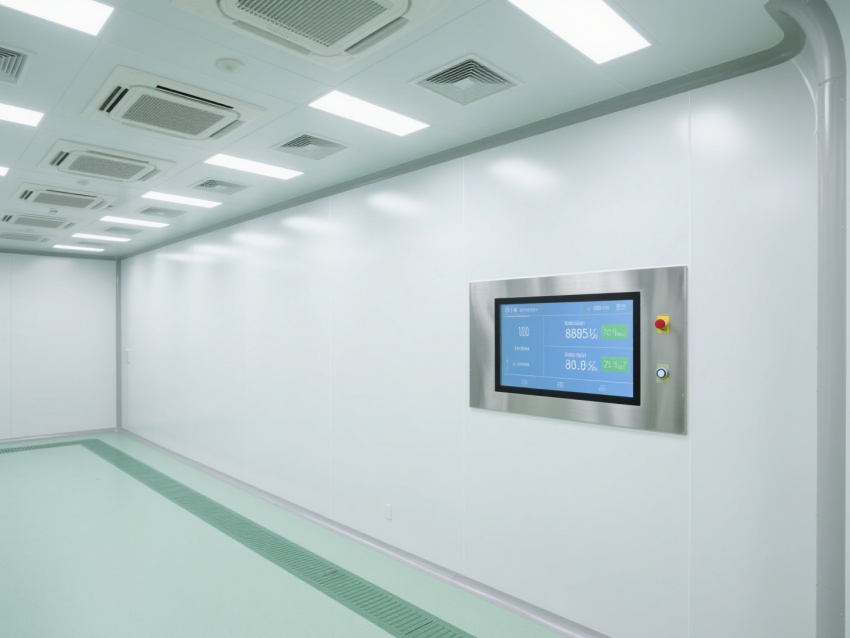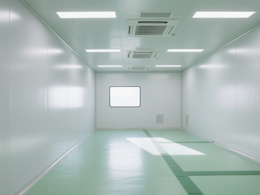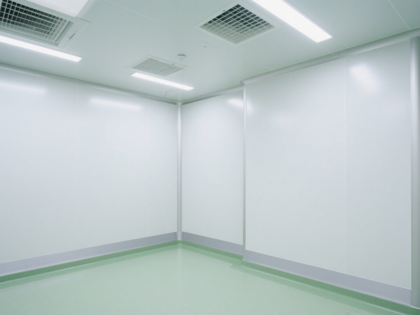 實驗室內部采用了白色和淺綠色為主的配色方案,營造出一種干凈、整潔的視覺感受。墻面、地面和天花板均采用無縫設計,便于清潔和消毒,防止微生物和灰塵的積聚。照明系統明亮且均勻,提供了良好的工作環境。