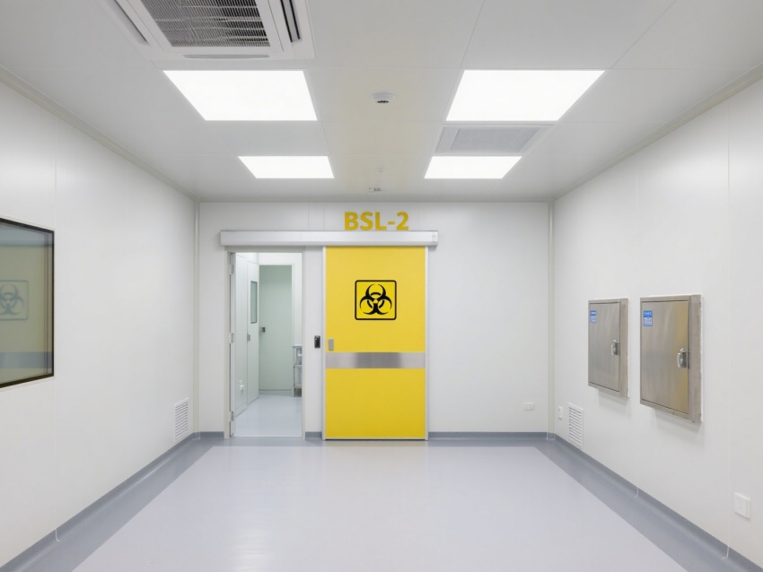 該病原生物檢測實驗室是符合BSL-2級生物安全標準的專業檢測場所。實驗室采用嚴格的分區設計,以黃色生物危害標識明確核心檢測區域,配備負壓系統(負壓15Pa),通過高效空氣過濾與氣流控制,防止病原微生物擴散。