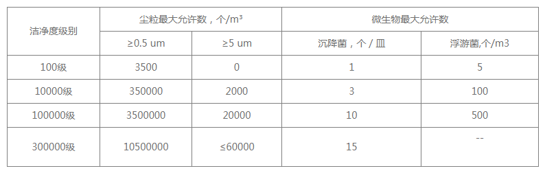 三、無菌醫療器械潔凈區潔凈度等級表