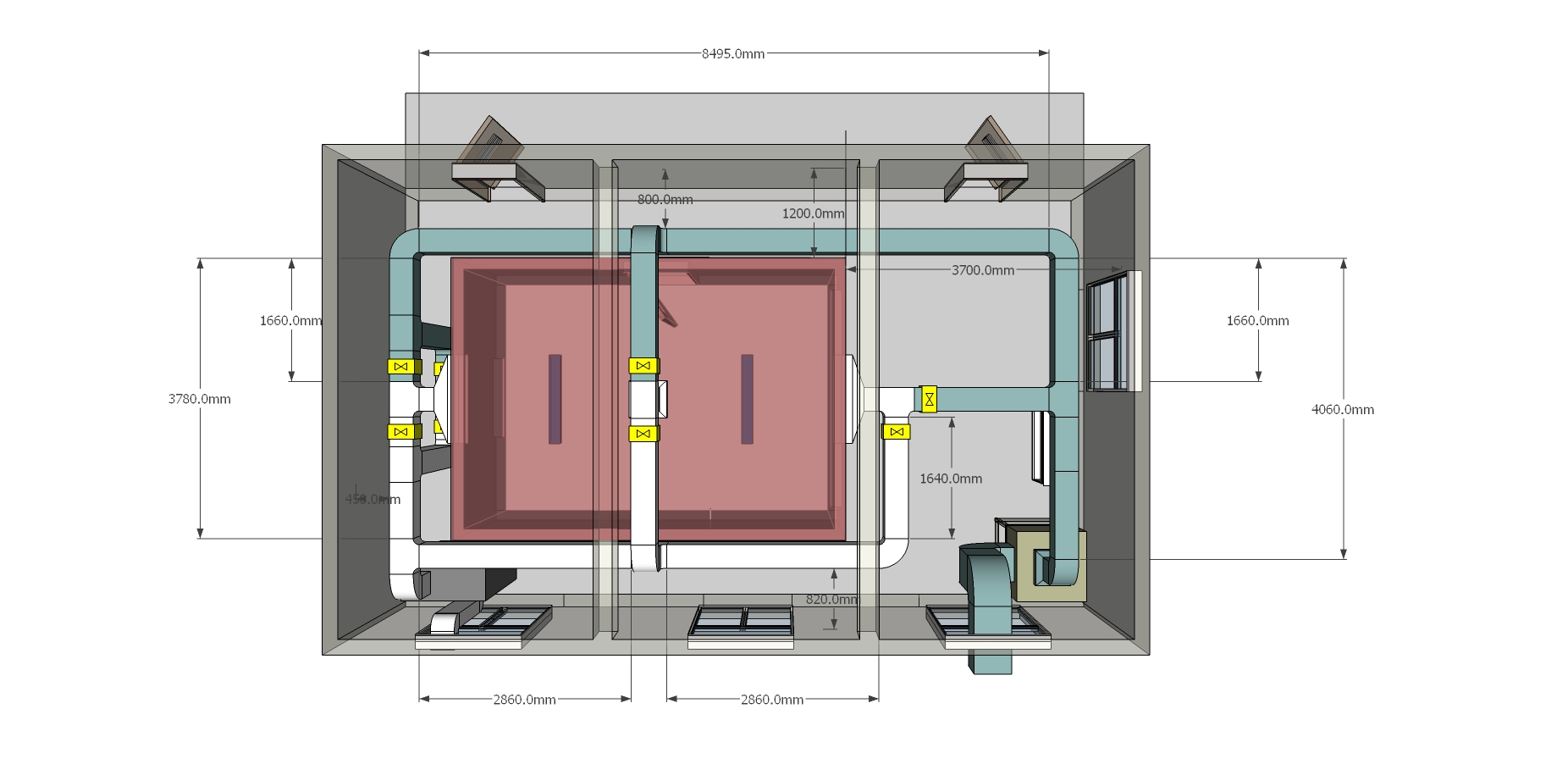 實驗內(nèi)室尺寸:   5m×3.5m×2.5m(長×寬×高)。